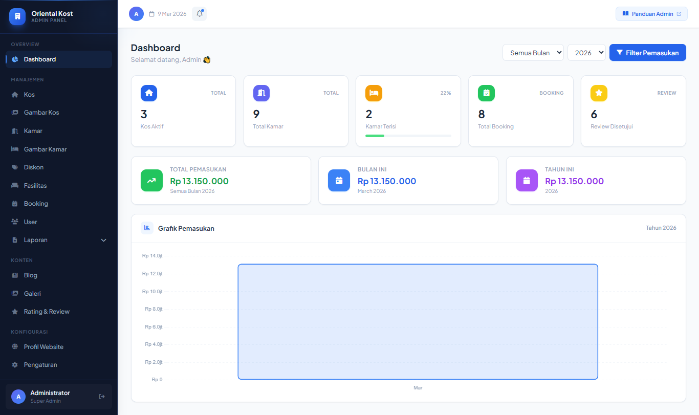 Oriental Kost menawarkan hunian nyaman dengan nuansa modern dan sentuhan desain oriental yang elegan. Berlokasi strategis dengan akses mudah ke berbagai fasilitas umum seperti kampus, pusat perbelanjaan, tempat makan, dan transportasi, menjadikan Oriental Kost pilihan ideal bagi mahasiswa maupun pekerja.